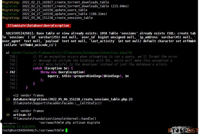 再次按照提示删除sessions,如下图文件/var/www/html/database/migrations